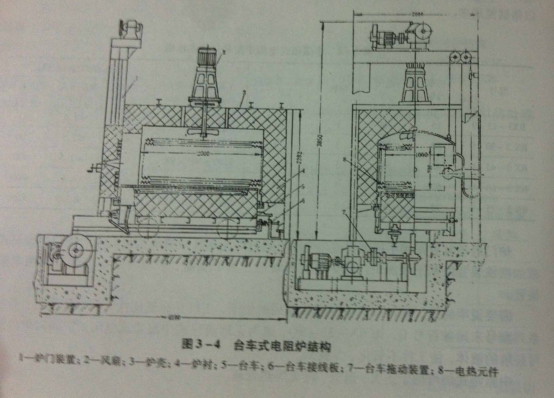 箱式熱處理爐的電熱元件布置在爐內(nèi)四周及爐底,臺(tái)車與爐底砌體間有彎曲狹長(zhǎng)縫隙。臺(tái)車上裝有電器連鎖裝置,當(dāng)爐門升高或關(guān)閉到一定位置時(shí)即可進(jìn)出。在爐膛尾端裝有與臺(tái)車拖動(dòng)機(jī)構(gòu)聯(lián)鎖的撞塊,以限制臺(tái)車的行程。爐內(nèi)裝有風(fēng)扇,使得傳熱速度加快,爐溫更均勻并可進(jìn)行回火。臺(tái)車式箱式熱處理爐比滾動(dòng)底式箱式爐更有利于工藝的操作,能熱處理更大的工件,熱處理的質(zhì)量也更好。