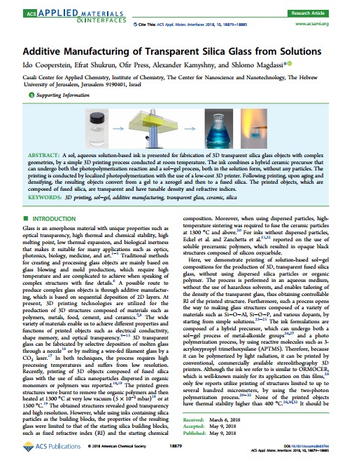 耶路撒冷大學(xué)使用鄭州科佳電爐有限公司生產(chǎn)的真空管式爐做實驗研究,提出了一種基于溶膠,水溶液的油墨,該油墨可用于制造復(fù)雜的3D透明石英玻璃物體,此項研究給3D打印行業(yè)帶來了很大的突破性進(jìn)展。該大學(xué)對該項研究發(fā)表的論文如下:SDz高溫箱式電阻爐,管式爐,真空退火爐,真空燒結(jié)爐,管式高溫爐-鄭州科佳電爐有限公司