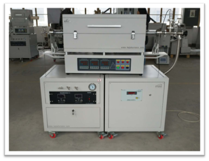 此款CVD管式爐有兩個溫區(qū),采用雙層殼體結(jié)構(gòu)和智能化程序控溫系統(tǒng),移相觸發(fā)、可控硅控制,爐膛采用氧化鋁多晶體纖維材料,雙層爐殼間配有風冷系統(tǒng),具有真空裝置,可以通氣氛抽真空,真空泵可以根據(jù)客戶要求的真空度選配,該爐具有溫場均衡、表面溫度低、升降溫度速率快、節(jié)能等優(yōu)點。