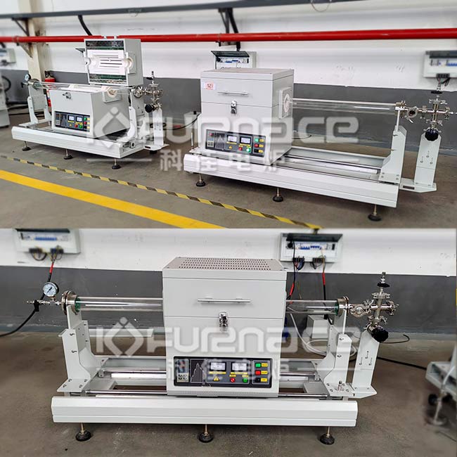 KJ-1200T-S6015LK1-H系列快速退火爐爐管兩端安裝真空法蘭,真空度用分子泵可以到10-5Torr,機(jī)械泵可到10-3Torr。爐底安裝一對(duì)滑軌,可用手動(dòng)滑動(dòng)。為取得最快加熱,可以預(yù)先加熱爐子到設(shè)定的溫度,然后移動(dòng)爐子到樣品位置。為獲得最快冷卻,可在樣品加熱后移動(dòng)爐子到另一端。加熱和冷卻速率在真空或者惰性氣體環(huán)境下可以達(dá)到10°C/min,是低成本快速熱處理的理想爐子。