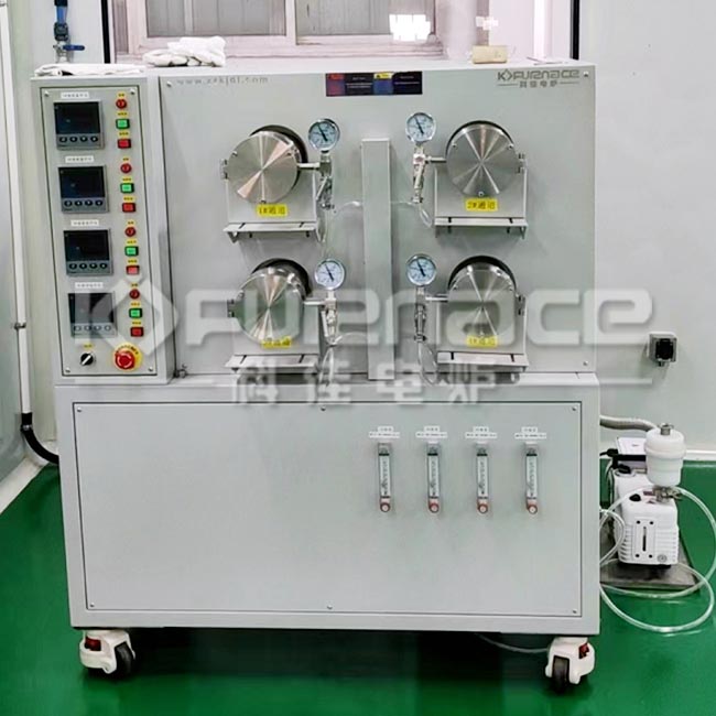 由4套管式爐組合而成,每個(gè)通道都能獨(dú)立控制,可同時(shí)處理1-4種材料,工作效率高